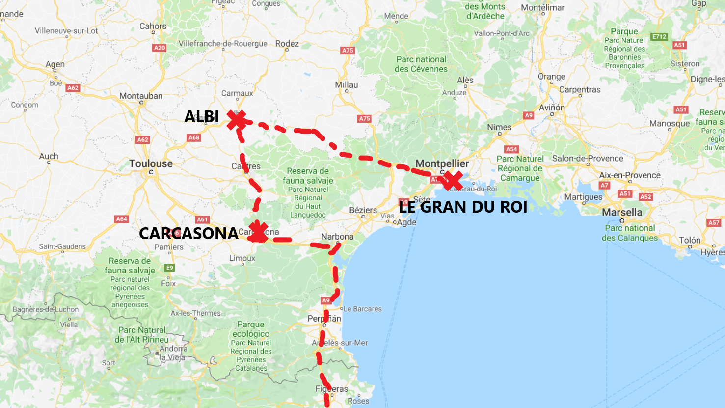 Recorrimos los 100km que nos separaban de Albi siguiendo nuestro plan de no utilizar autovías ni autopistas. Lleva más tiempo, en ocasiones más kilómetros, pero nos recompensa con muchas más experiencias y lugares que recordar. Todos esos pueblos que atravesamos, pequeños cafés, puertos de montaña… todo ello se perdería inadvertido si usáramos las autovías.